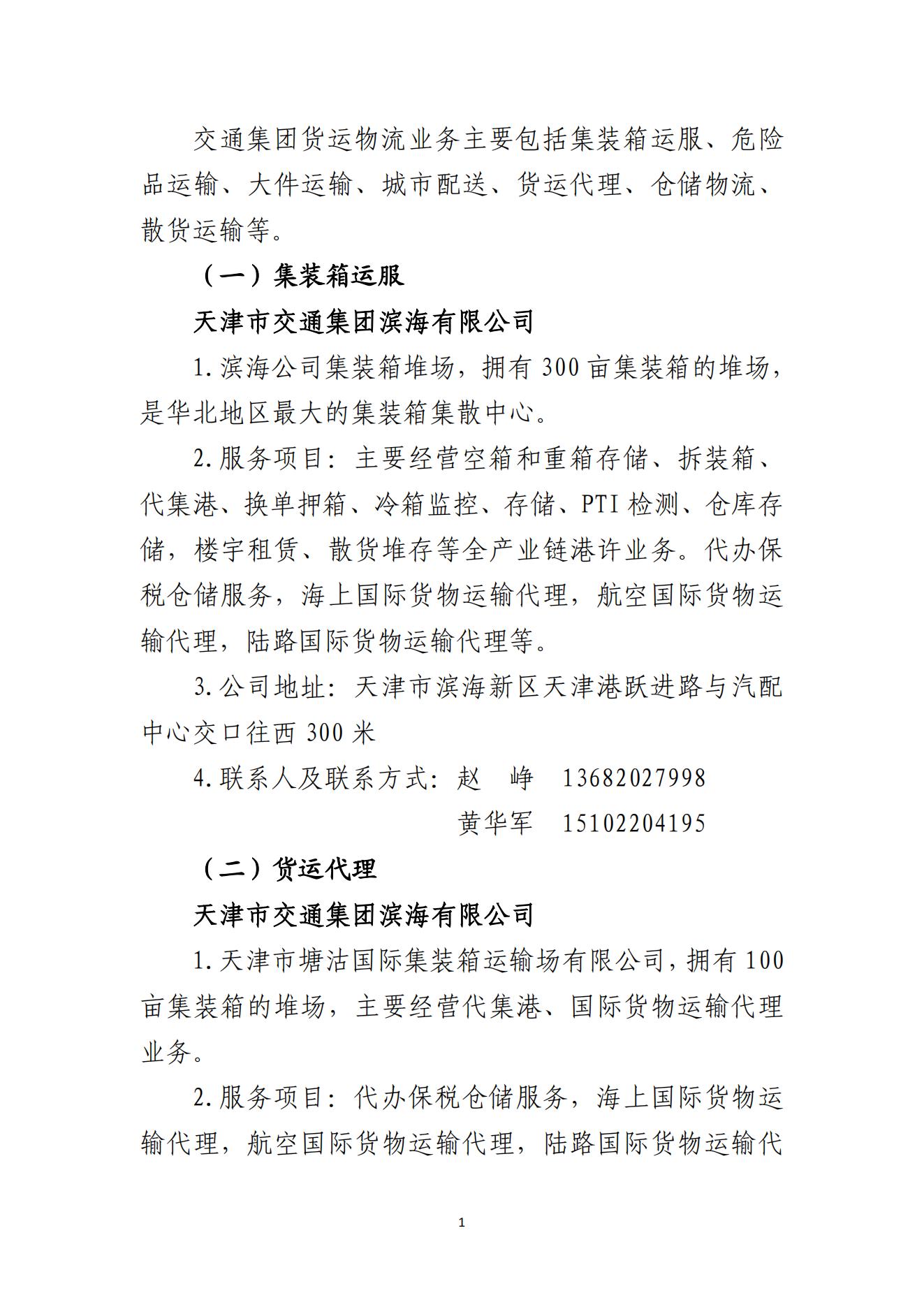 天津市交通(集團(tuán))有限公司服務(wù)項(xiàng)目一覽——綜合物流